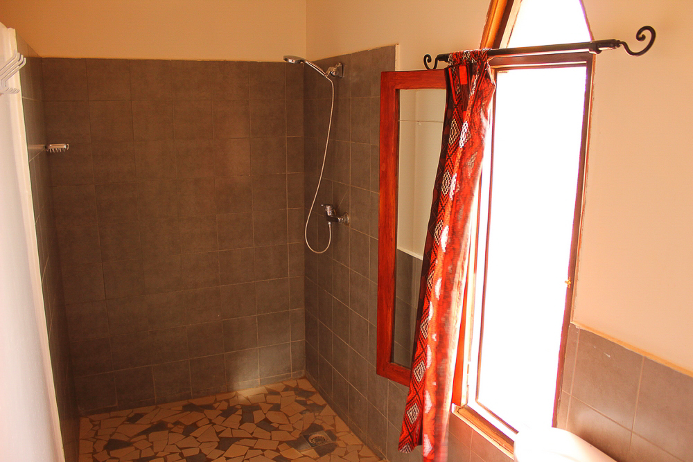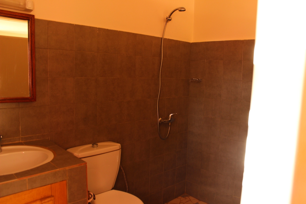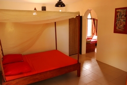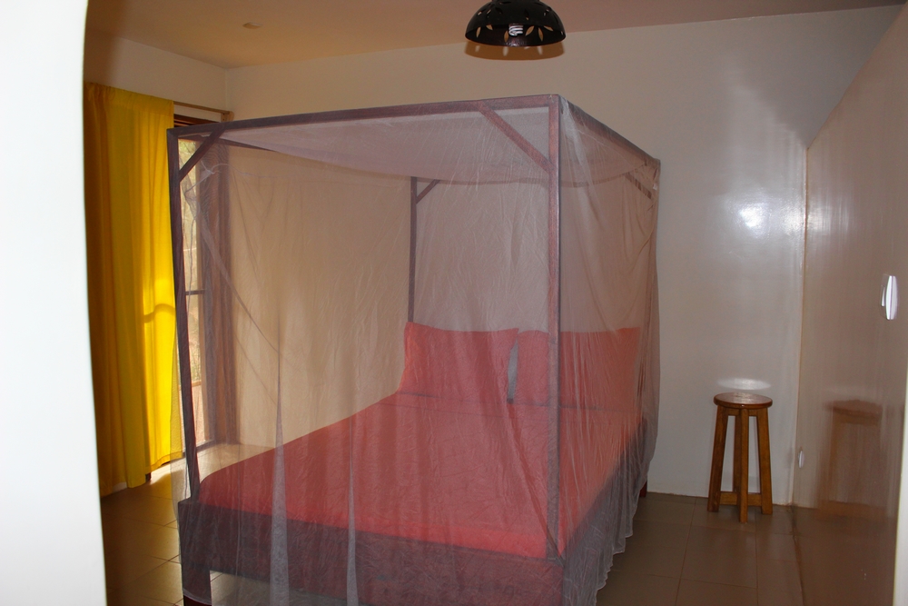 Composé de 1 pièce. Lit double moustiquaire et ventilateur, un couloir avec une salle de douche et toilette.