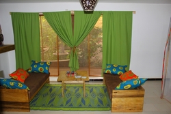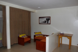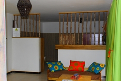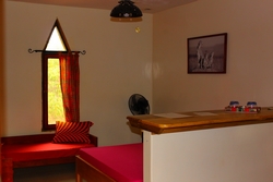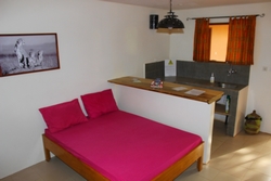 Composé de 1 pièce. Lit double avec moustiquaire et ventilateur, un coin salon, une salle de douche et toilette.